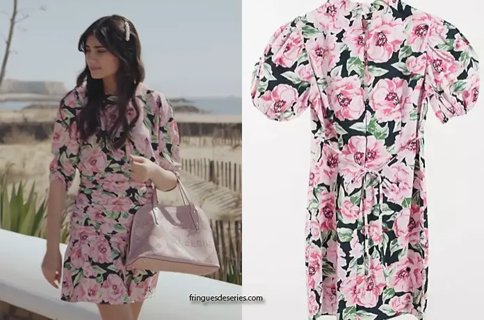 On reconnait une petite robe en popeline, avec de grosses fleurs roses. On la trouve ici, en promo (14,15 €)