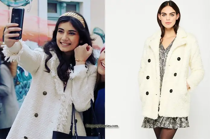 Dans Demain nous appartient, Camille (Elisa Ezzedine), la fille de Xavier, est une instagrammeuse à succès. Et comme il se doit, elle fait des selfies. Ici dans un tout joli manteau blanc en fausse fourrure que l’on trouve ici