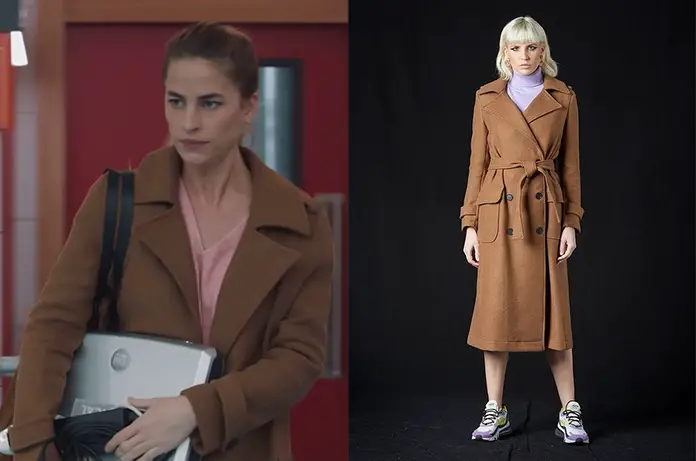 Victoire (Solène Hébert) porte un nouevau manteau dans Demain nous appartient 882. Il s’agit d’un manteau camel de la collection hiver 2020-2021 de la marque florentine B.YU. Cliquez ici pour trouvez une boutique dans votre secteur.