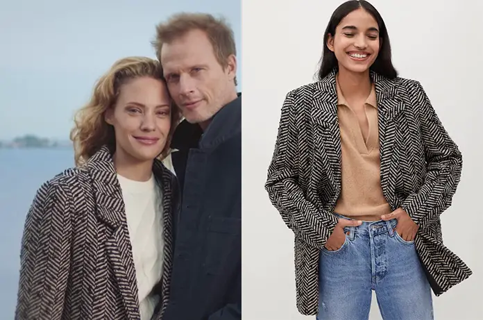 Et voici le joli manteau à rayures d’Alma (Camille De Pazzis) dans le générique de Demain nous appartient. On le trouve ici.