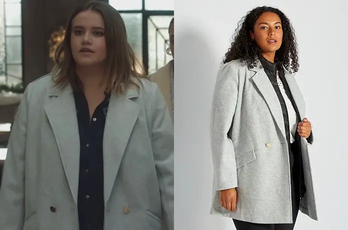 Lina (Marie Caizergues ) a un avis très tranché sur Charlie dans Demain nous appartient 1083. Elle porte un manteau gris que l’on trouve ici