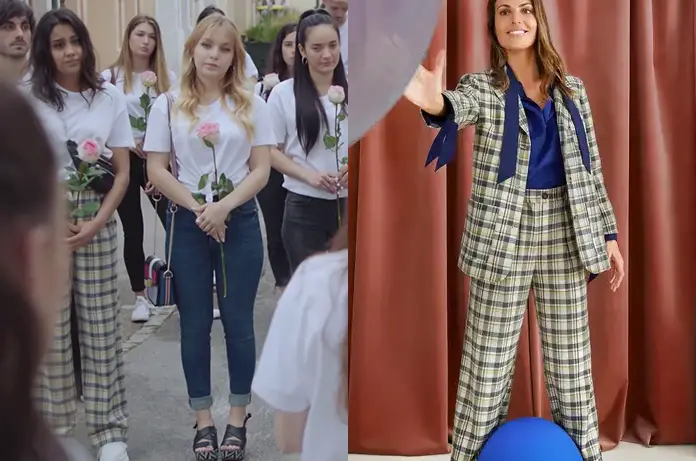 Dans Demain nous appartient 961, Noor (Sahelle de Figueiredo) participe à la marche blanche avec un pantalon à carreaux. On le trouve ici