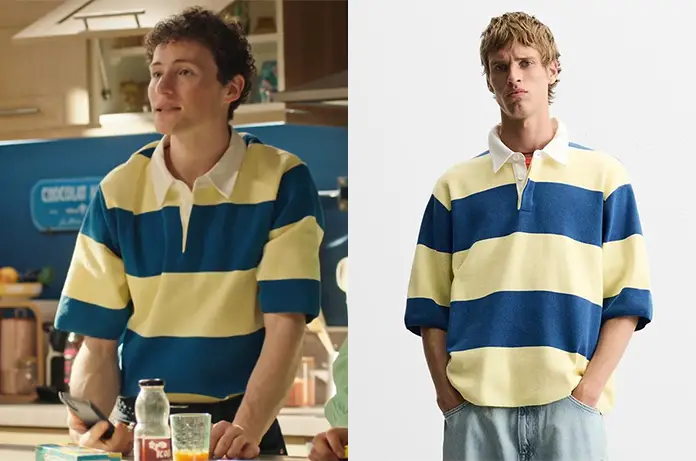 Voilà donc le polo bleu et jaune de Jack (Dimitri Fouque) dans Demain nous appartient épisode 1938.
