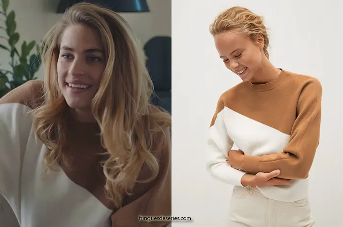 Victoire (Solène Hébert) discute avec sa mère dans Demain nous appartient 837 et porte un très joli pull blanc et marron. On le trouve ici
