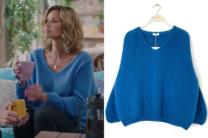 Chloé (Ingrid Chauvin) portait un pull en mélange acrylique/mohair/polyamide dans Demain nous appartient 1155. On le trouve ici