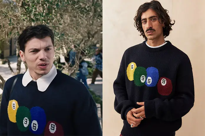 Gaspard (Maxym Anciaux) porte un nouveau pull dans Ici tout commence épisode 1167. Avec 4 boules de snooker colorées.