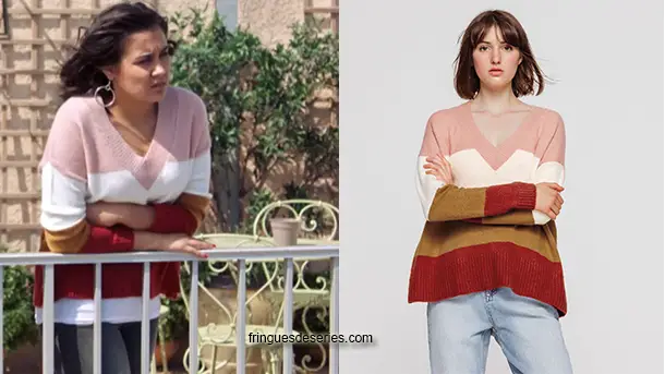 […] Beddiar (Sahelle De Figueiredo) dans Demain nous appartient 812. J’en avais déjà parlé en novembre 2019. Il s’agit d’un pull Bizzbee, qui n’est plus en vente depuis […]
