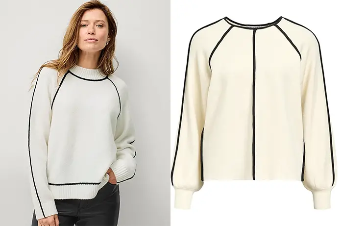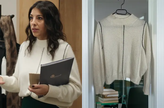 Dans l’épisode 2139 de Demain nous appartient, Soraya (Kenza Saïb Couton) a une nouvelle fois prouvé que son vestiaire d’avocate ne se limite pas aux tailleurs stricts. Elle est apparue avec un pull en maille écrue, une pièce confortable, et graphique, grâce aux lignes verticales contrastées noires qui viennent structurer la silhouette.
