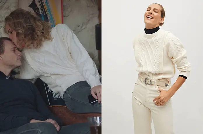 On revoit Alma (Camille De Pazzis) dans Demain nous appartient 844. De toute beauté avec son pull écru torsadé. On le trouve ici.ou ici (Belgique)