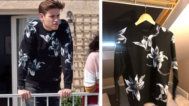 Il faudra aller sur Vinted pour retrouver le pull orchidées Zara que porte souvent Jules (Xavier Widhoff) dans Demain nous appartient (ici l’épisode 589)