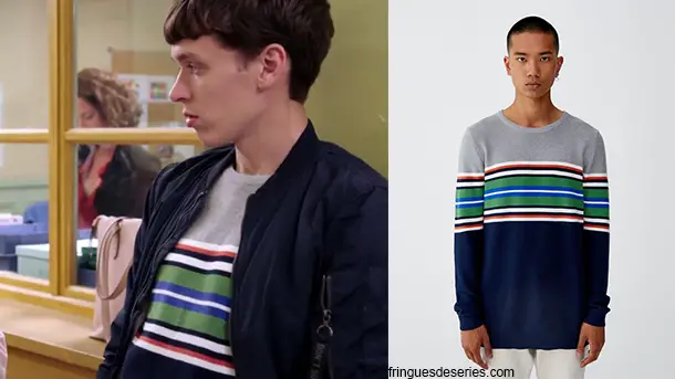 Mathias (Gulliver Benhadj) va au lycée en portant un joli pull rayé dans l’épisode 315 de Demain nous appartient. On le trouve ici