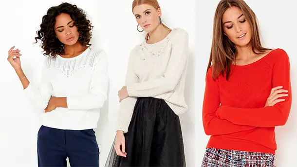 - un pull fin au plastron ajouré, mais en rouge, 12,99€