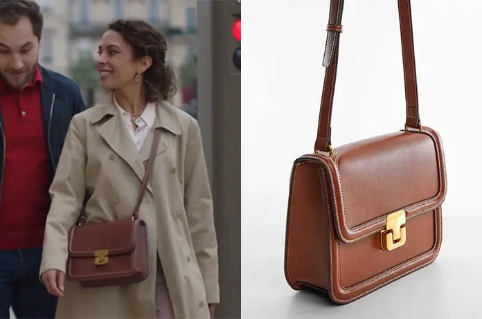 Dans Demain nous appartient 1412, Myriam (Selma Kouchy) porte un sac marron pour rentrer chez elle. Il s’agit du modèle Carmen de la marque Mango