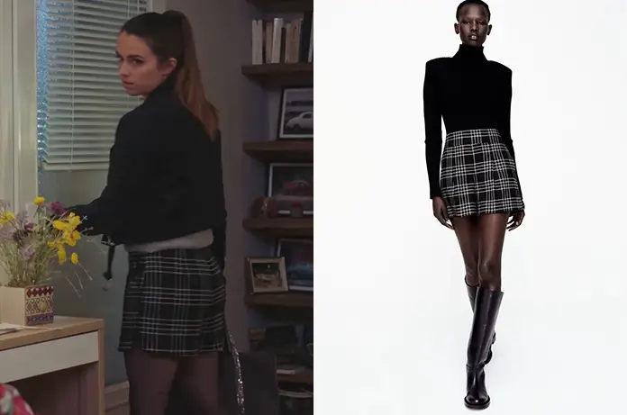 Charlie (Clémence Lassalas) rentre plus tôt que prévu dans Demain nous appartient 852. Elle porte un short à carreaux que l’on trouve ici.