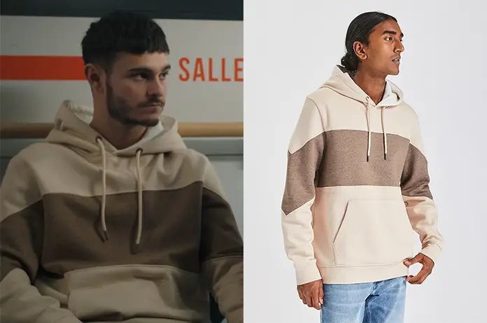 Nathan (Adher) se retrouve à l’hôpital dans Demain nous appartient 1415 avec son sweat à capuche bicolore, dans les tons beiges.