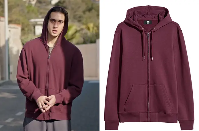 Dorian (Rayane Huber) porte un sweat bordeaux pour son retour à Sète, dans Demain nous appartient épisode 1938.
