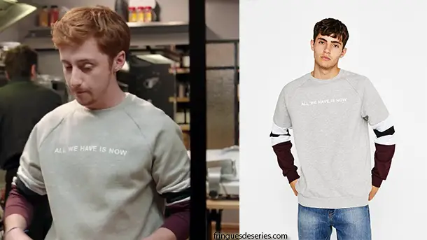 Dylan (Joaquim Fossi) est de retour à Sète pour faire un stage au Spoon. Il porte un sweatshirt avec la mention « All we have now ». Il n’est plus disponible, maison l’a retrouvé ici, sur Vinted.