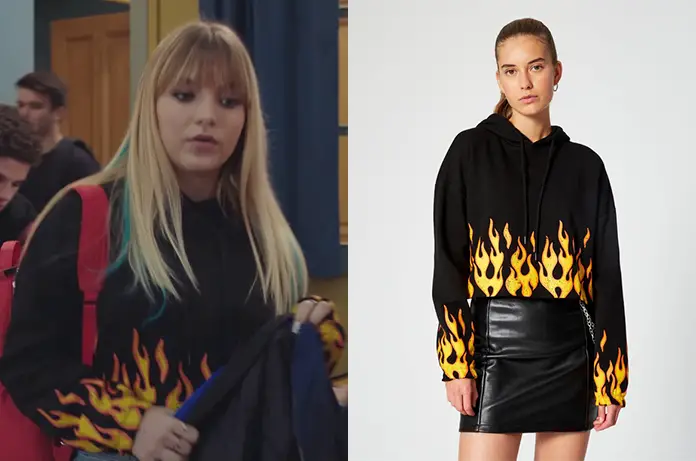 Judith (Alice Varela) était tout feux tout flammes dans Demain nous appartient 833. Elle a trouvé son sweat noir ici.