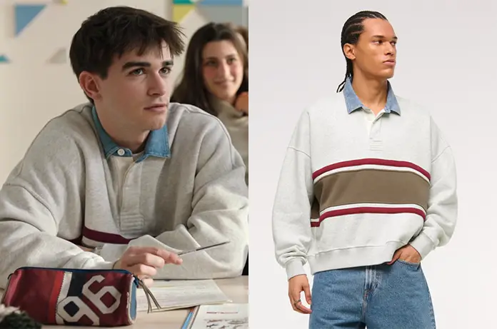 Marceau (David Mousset) porte ce sweat dans l’épisode 2139 de Demain nous appartient. C’est la pièce idéale pour un style preppy-sport sans effort.