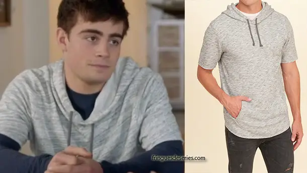 Maxime (Clément Remiens) portait un t-shirt à capuche gris dans l’épisode 175 de Demain nous appartient. Il est en promo, à 14,99 € en ce moment.