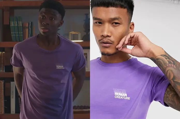 Souleymane (Dembo Camilo) est surpris sans son t-shirt Human Creature dans Demain nous appartient 837. On trouve ce t-shirt ici.