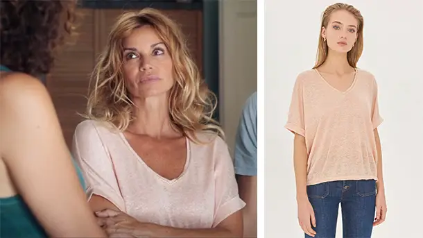Fringues de sériesDemain nous appartient DEMAIN NOUS APPARTIENT : le t-shirt rose pâle de Chloé dans l’épisode 555 Par FDS - 24 septembre 2019 0 2145 FacebookTwitterPinterest Chloé (Ingrid Chauvin) prête son aide à Clémentine dans DNA 555. Elle portait un t-shirt assez ample de couleur nude, disponible ici J’aime ça :J’aime chargement…