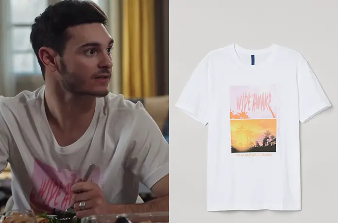 Diner tendu pour Nathan dans Demain nous appartient 1187. Il porte un t-shirt avec l’inscription « Wide awake ». On le trouvait ici.