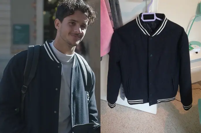 Dans l’épisode 1080 de Demain nous appartient, un élève en bomber bleu marine accueille Jack avec un grand sourire. Ce blouson est un ancien modèle Jules (on l’a vu sur Vinted). mais il s’agit d’un modèle que l’on trouve facilement dans d’autres marques sur le net.
