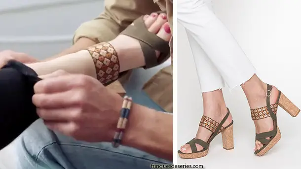 A la suite de son entorse, Anna (Maud Baecker) se fait déchausser par le nouvel infographiste de son journal. On peut donc clairement voir les sandales qu’a reconnues une instagrammeuse, visiteuse du site. Merci à elle pour l’info. On trouve les fameuses sandales avec une large bride à motifs ethniques ici
