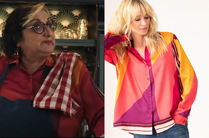 C’est pour ça que je suis pour l’amour libre…pour éviter ça. Encore une belle leçon de vie de Mona (Catherine Benguigui) dans Demain nous appartient 1415. Il faudra voir l’épisode pour comprendre le contexte de ses propos…mais on peu déjà admirer sa blouse et son panaché orange, prune et rose.