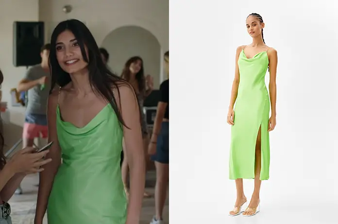 Cela vous a peut-être donné envie de porter une robe verte. Dès lors, nous vous proposons 7 modèles similaires. Trois critères de sélection : longue, un joli vert lumineux, et des fines bretelles.