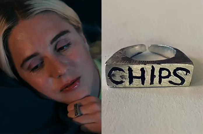Dans Journal d’une fille larguée (en vo Halva Malmö består av killar som dumpat mig ; en angl. Diary of a Ditched Girl), Amanda (Carla Sehn) porte, notamment, cette chevalière avec l’inscription CHIPS.