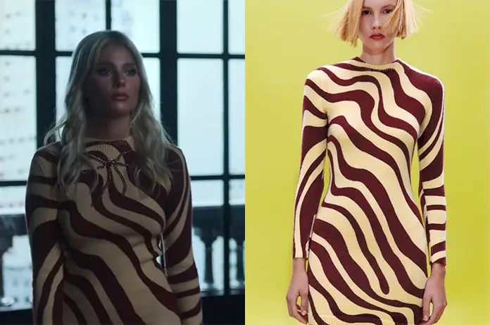 Isadora (Valentina Zenere) porte cette robe à l’imprimé animalier dans Élite 6×01.