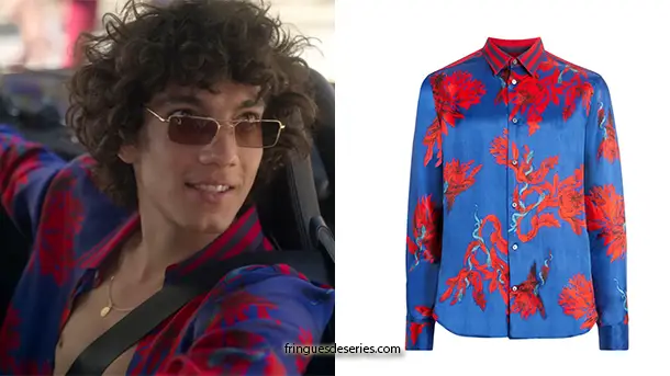Valerio (Jorge López) portait cette chemise fleurie à col rayé dans l’épisode 2 de la saison 3 d’Elite. On la trouvait ici