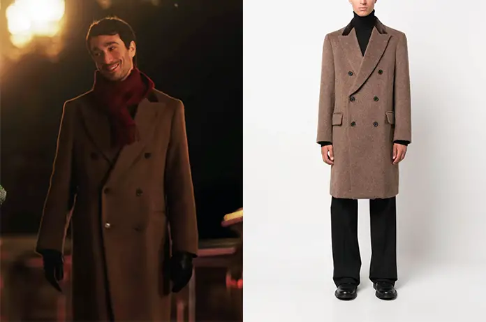 Marcello (Eugenio Franceschini) se balade avec Emily dans Emily in Paris 4×08, avec ce beau manteau en poil de chameau.