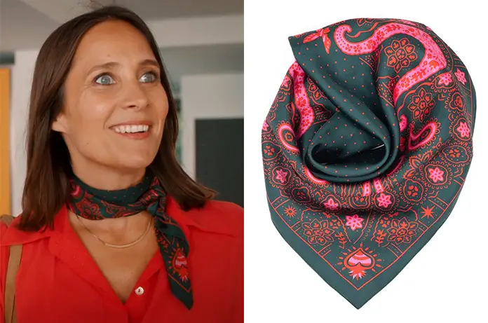 Et voici le joli foulard imprimé d’Erica (Julie de Bona) dans l’épisode 7 de la série TF1 Erica.