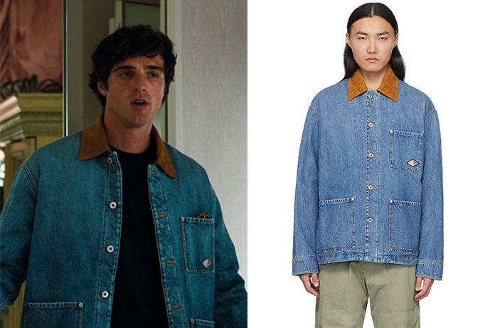 Pour ce premier épisode de la saison 3 d’Euphoria, Nate (Jacob Elordi) choisit une pièce de haute voltige : une veste de travail en denim signée Bottega Veneta.