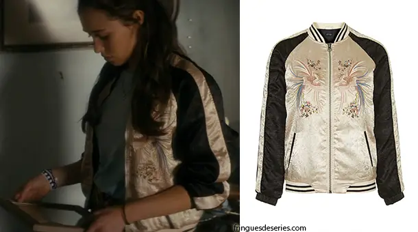 La vie suit doucement son cours dans le quartier protégé de Fear the Walking dead. Alicia (Alycia Debnam-Carey) y déambule avec une veste satinée TOPSHOP, disponible ici