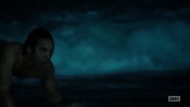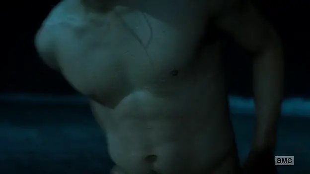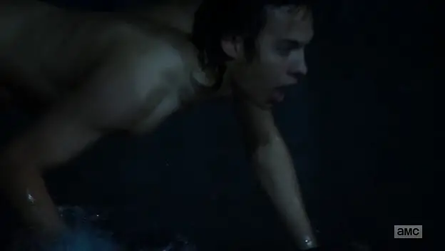 Depuis le début de la saison 1 de Fear the Walking dead, Nick Clark (Frank Dillane) se plait à montrer son torse… On se souvient de l’épisode 4 où il paressait mollement dans une piscine alors que le monde se délitait. Toujours dans l’épisode 4, mais de la saison 2, on retrouve le fils Clark dans un milieu aqueux, mais nu cette fois. Il a quitté l’Abigail pour nager de nuit vers la côte. On ne peut vous en dire plus sans déflorer le sujet…