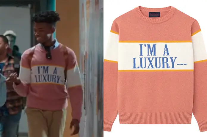 Ben Wheeler (Jonas Dylan Allen) porte un pull iconique dans le premier épisode de First Kill, sur Netflix. Il s’agit d’une réédition d’un pull vu sur Lady Di. Ce vêtement estampillé d’un large « I’m a luxury’ est le fruit d’une collab entre Gyles & George et Rowing Blazers.