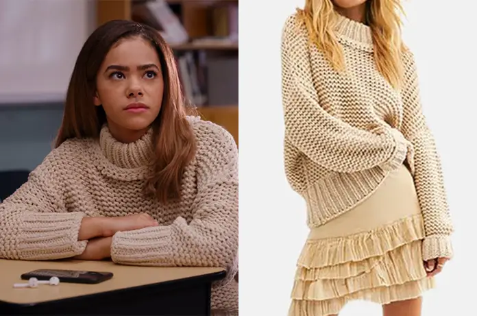 Ginny (Antonia Gentry) porte ce très joli pull en maill beige dans Ginny & Georgia 1×08. Bonne nouvelle, on le trouve ici, en promo