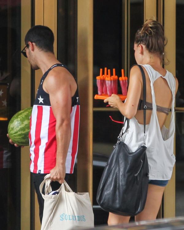 Joe Jonas avait aussi des couleurs patriotiques pour faire ses courses