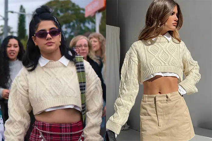 Amerie (Ayesha Madon) retourne à l’école avec ce pull court couleur crème dans Hartley, coeurs à vif (Heartbreak High) 2×01, sur Netflix