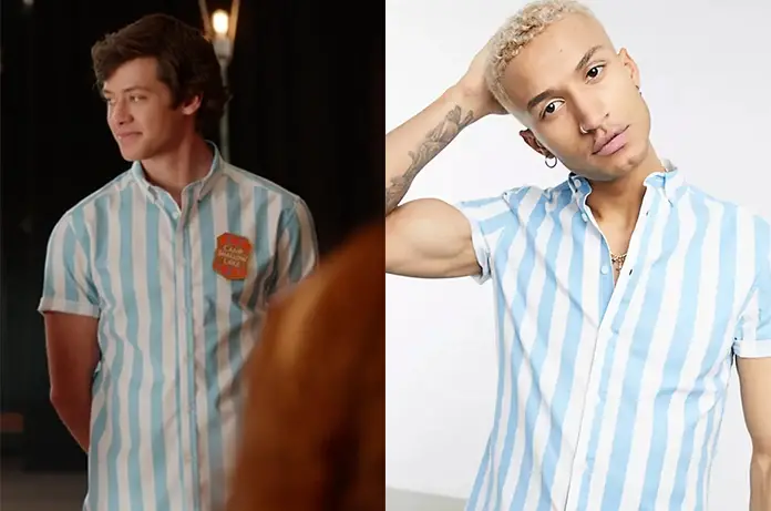 E.J. (Matt Cornett) porte une petite chemise à rayures bleues dans HIGH SCHOOL MUSICAL : THE MUSICAL : THE SERIES 3×05.