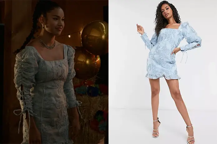 Gina () portait cette jolie robe aux épaule bouffantes dans High School Musical : the musical : the series 2×05.