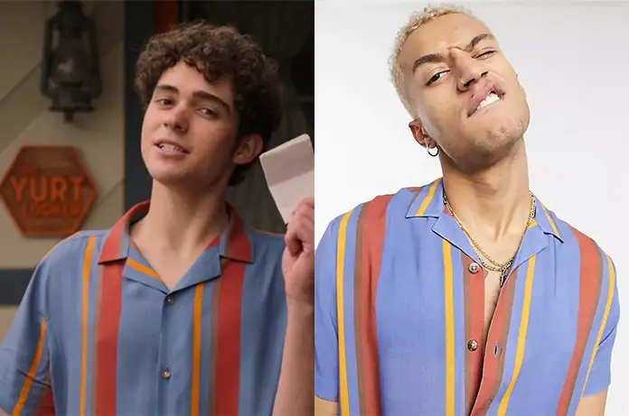 Ricky (Joshua Bassett) rêve de faire un câlin à Corbin Bleu dans HIGH SCHOOL MUSICAL : THE MUSICAL : THE SERIES 3×04. Il porte une chemise bleue et orange que l’on trouve ici