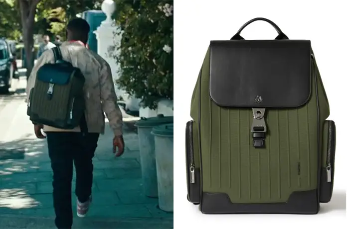 Kai (Jude Cudjoe) sort de chez lui, dans Hijack 1×03, avec ce sac à dos.