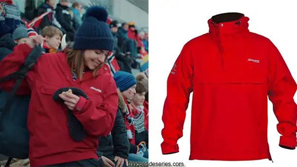 Johanne (Ida Elise Broch) portait un anorak rouge de la marque norvégienne Bergans dans le 5e épisode de Home for Christmas. On le trouve ici ou ici, sur Ebay.