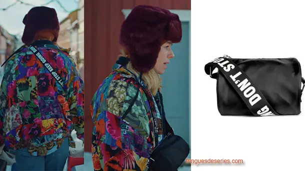 Jorgunn (Gabrielle Susanne Solheim Leithaug) se baladait avec un sac noir portant la mention Don’t stop keep going dans Home for Christmas E06. On le trouve ici.