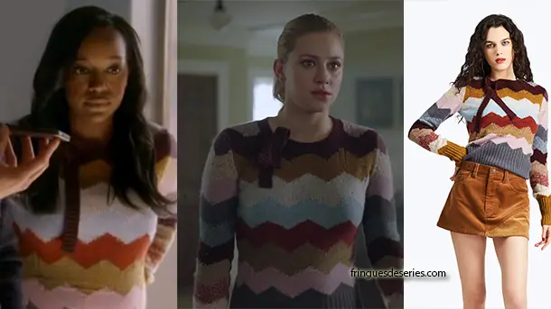 Michaela Pratt (Aja Naomi King) portait le même pull Marc Jacobs que Betty (Lili Reinhart) dans l’épisode 12 de la saison 4 de How to get away with murder